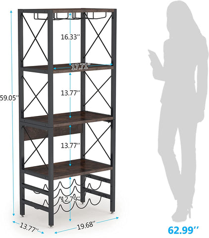 Space Saving & Multifunctional - Measuring 19.7"(L)×13.8"(W)×59.1"(H), it occupies little space. Three upper shelves provide enough space for wine buckets, drinks, trays, dishes, condiments, and other kitchen supplies. Widely used as a wine stand, kitchen rack, and microwave oven stand-in dining room, living room, wine cellar, or pantry.