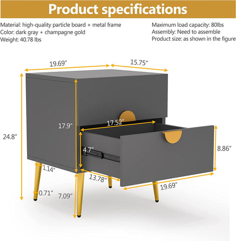 PERFECT SIZE - Overall size:19.7'' X 15.75'' X 24.8'', the wooden bedside table has a high enough bottom space to allow the sweeping robot to enter and exit freely, which is convenient for daily cleaning.